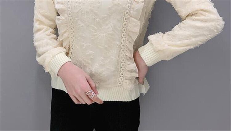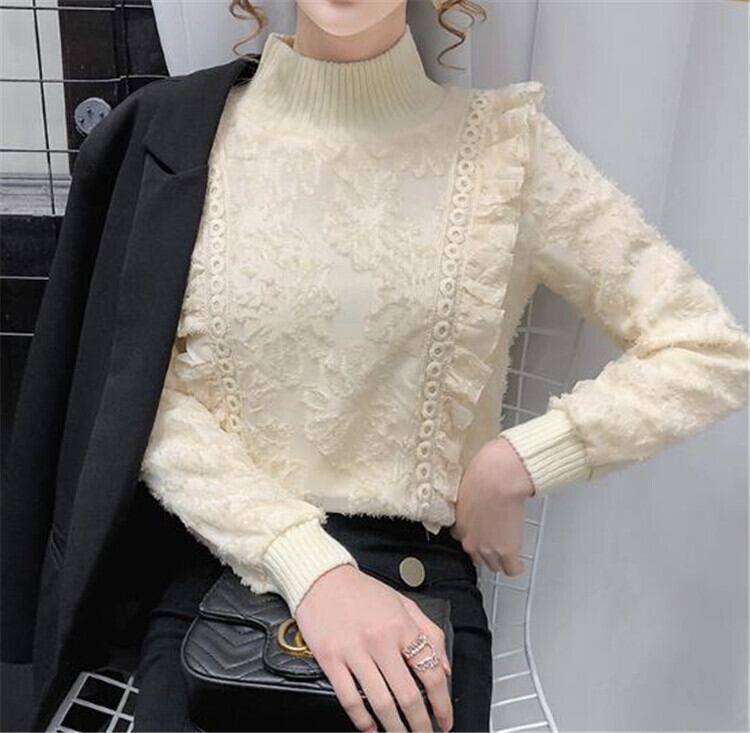 韓国ファッション 裏起毛 暖かい 厚手 トップス タートルネック 気質 トップス レース