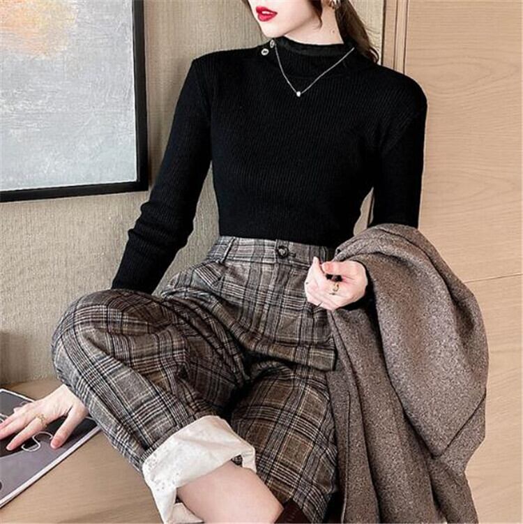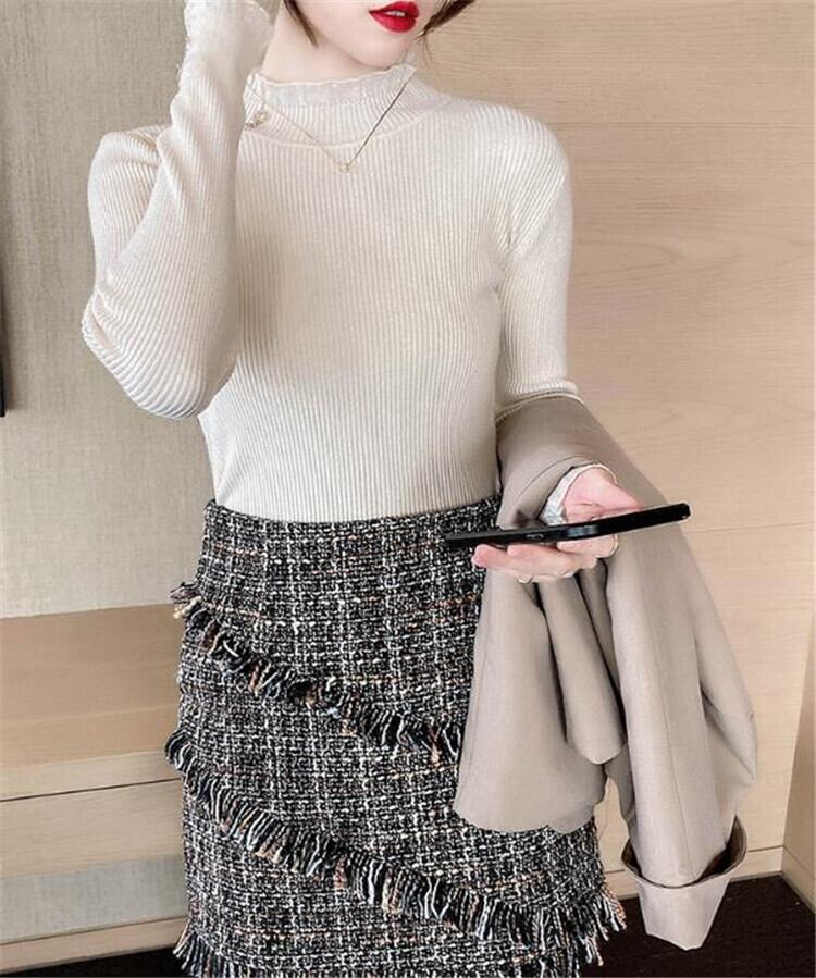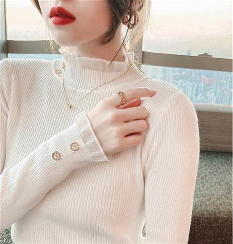 カジュアル レース タートルネック セーター 長袖 短いスタイル