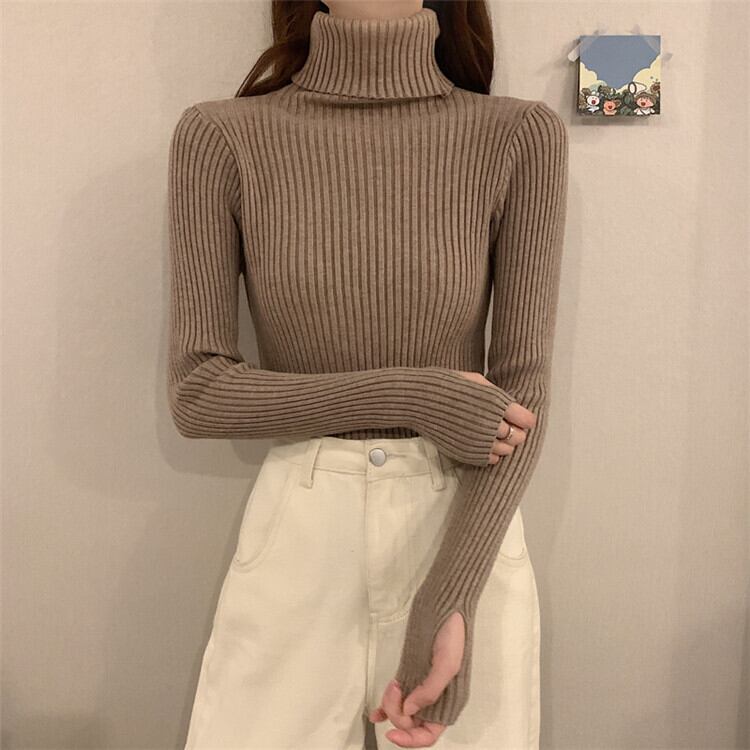 気質 シンプル セーター ニットトップス 短いスタイル タートルネック