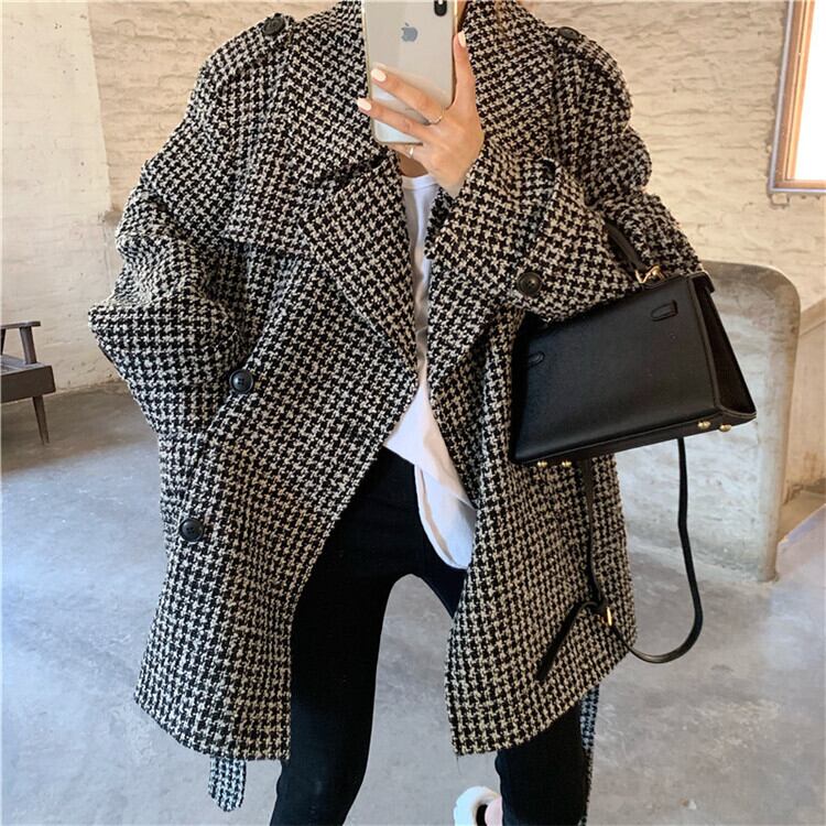 独特なシルエットに魅了される 格子縞 学生 中・長セクション ギャザリング ウィンドブレーカー