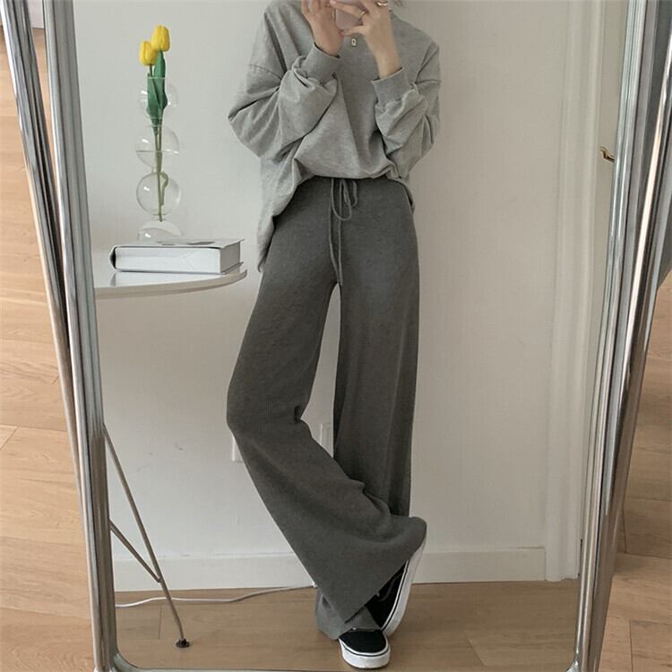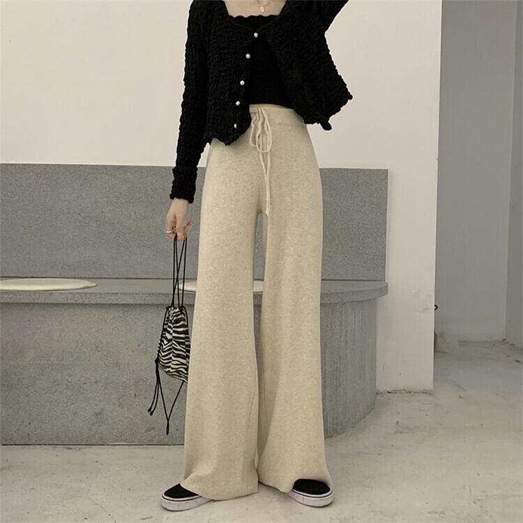 見ていてとても綺麗です ドローストリング ハイウエスト カジュアルパンツ ニットパンツ