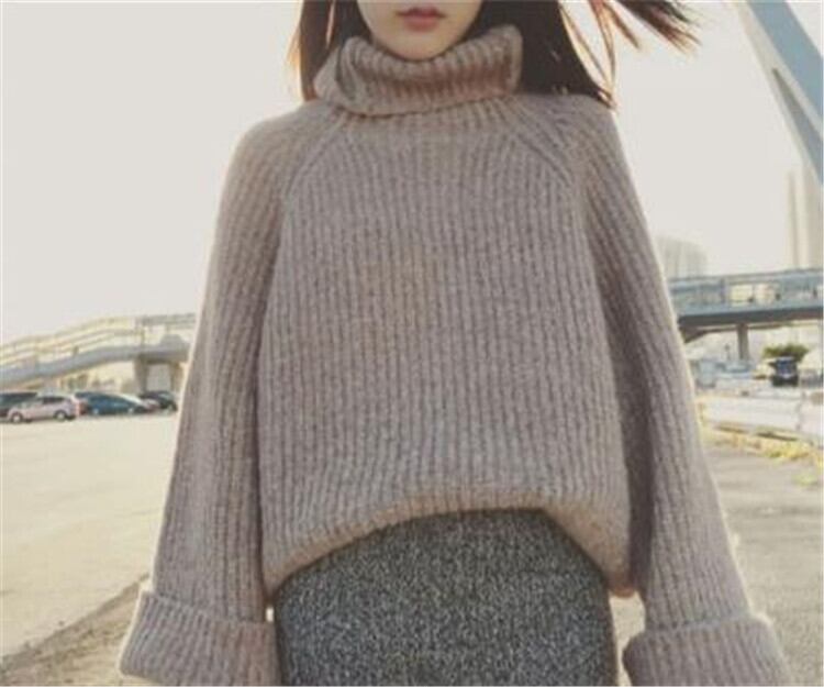 暖かい 厚手 ホーンスリーブ ニット コート 怠惰な風 セーター 中・長セクション タートルネック
