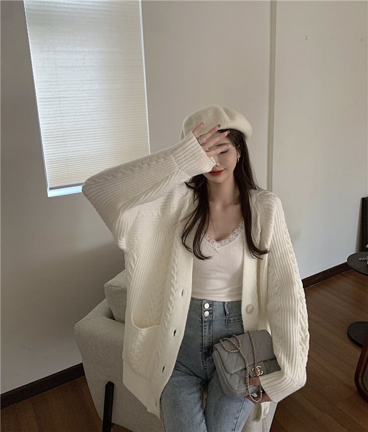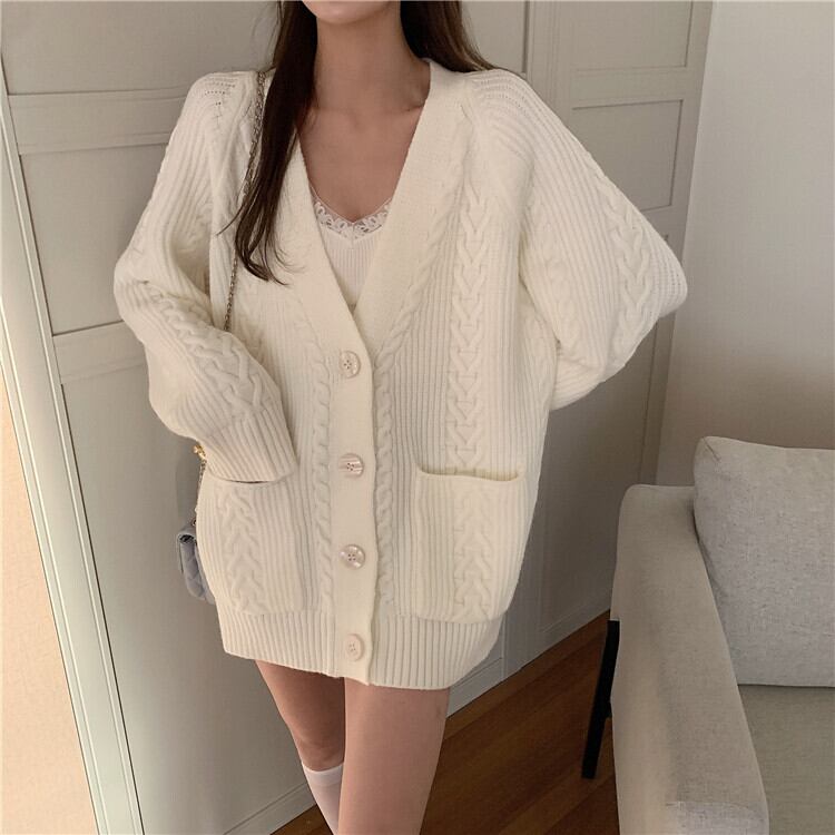 カジュアル 麻の花 Vネック 単体ボタン ニット カーディガン sweet系 百掛け スリム おしゃれな