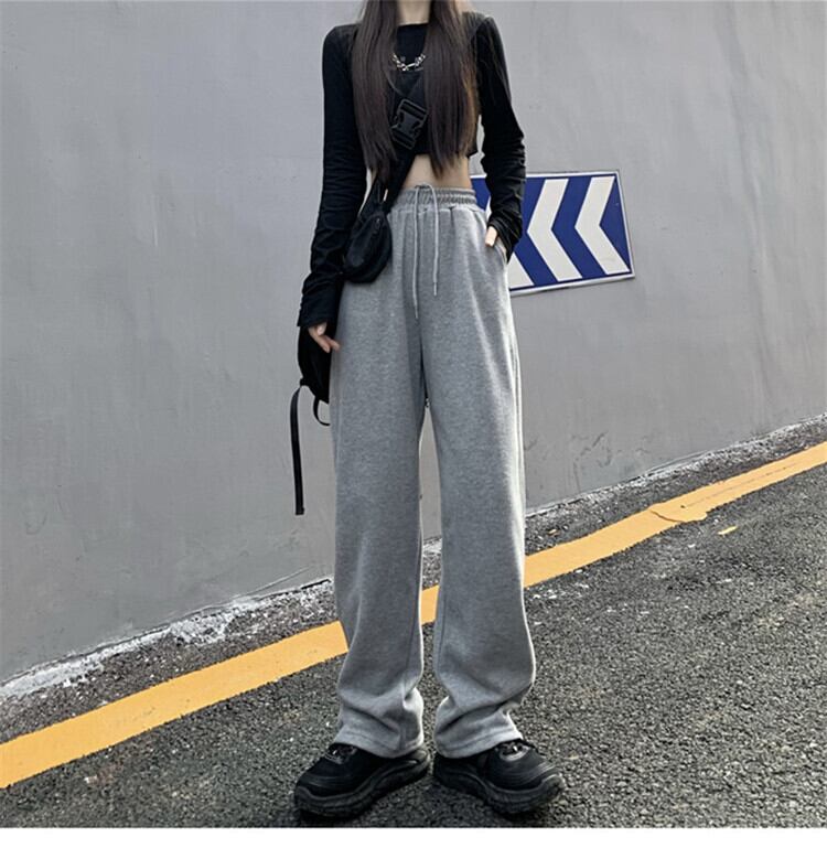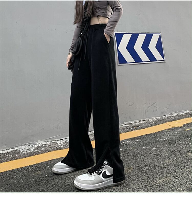 スプリット バンディング ハイウエスト ワイドパンツ カジュアル