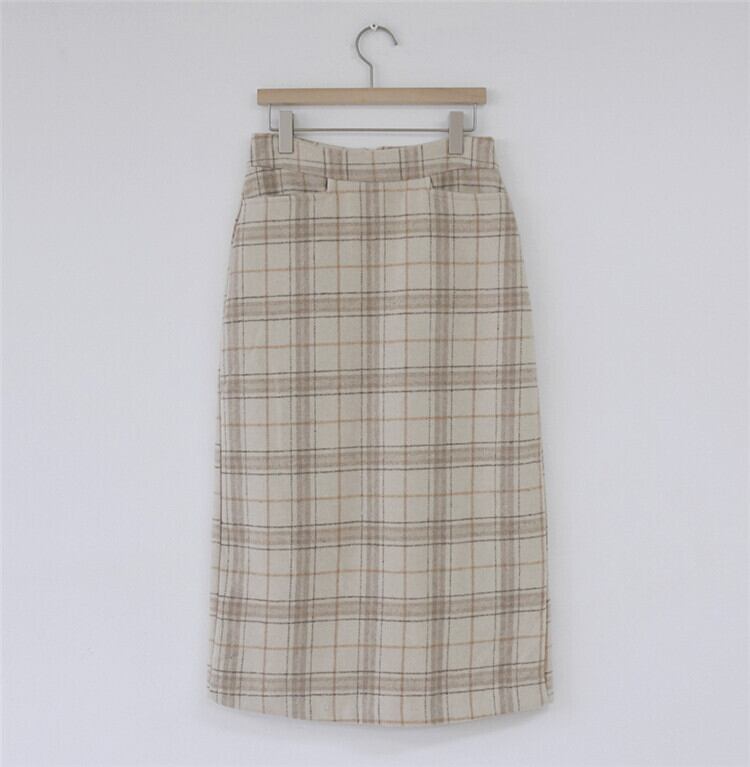 INSスタイル レトロウール スプリット チェック柄 ハイウエスト スリム スカート中・長セクション