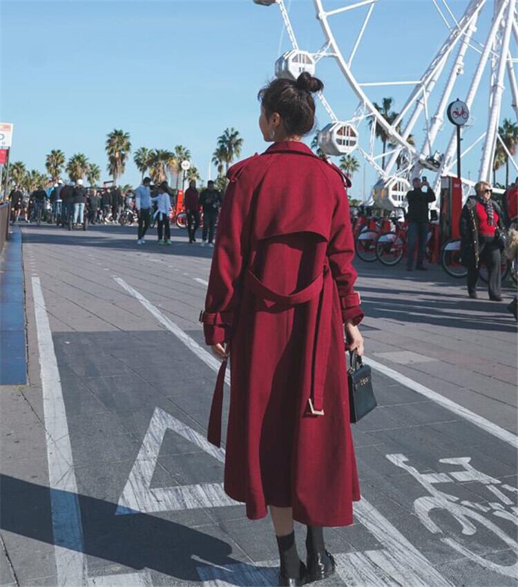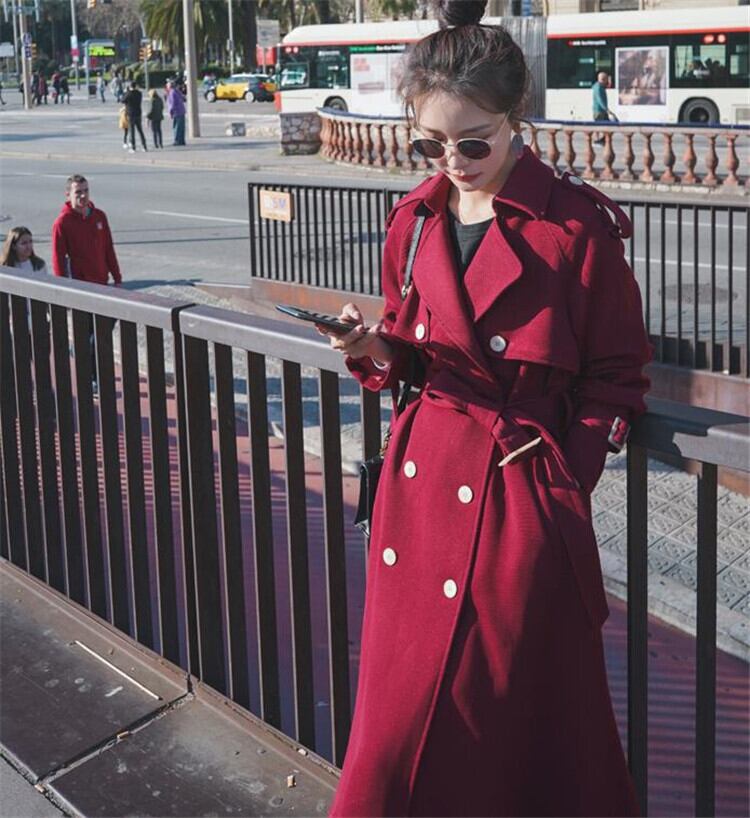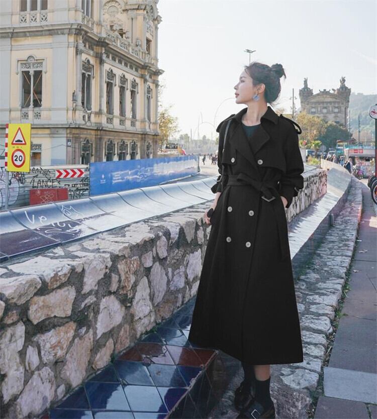 ヘップバーンスタイル カジュアル ウインドブレーカー コート ロングセクション