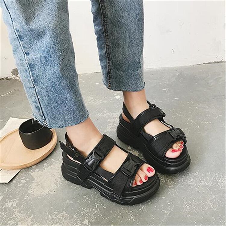 女の子ファッション 厚い底 学生 サンダル カジュアル 増加 ローマンシューズ
