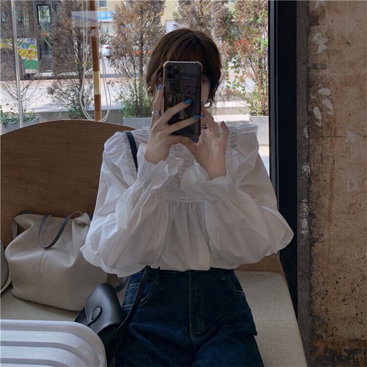 フリル ホーンスリーブ トップス 長袖 シャツ ゆったりする レディース デザインセンス