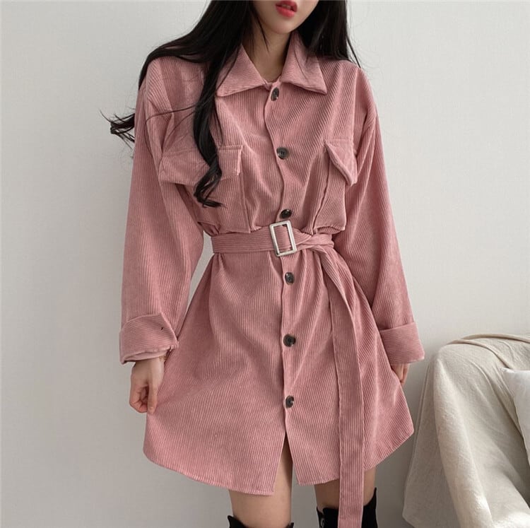 ダブルポケット 単体ボタン コーデュロイ シャツワンピ