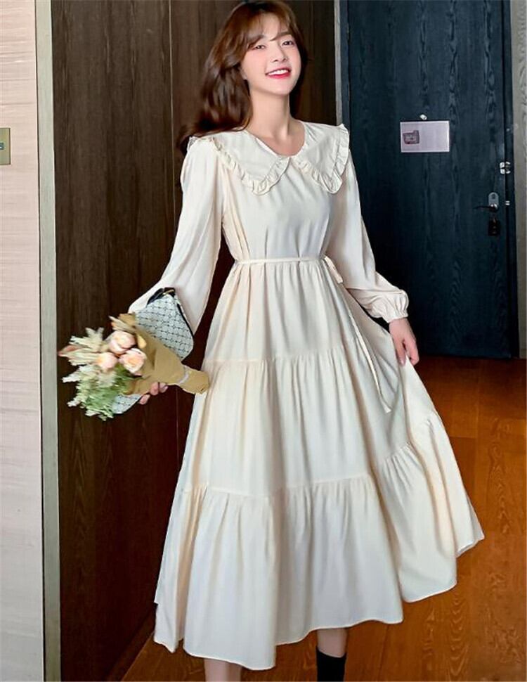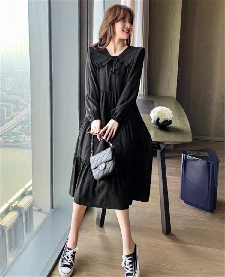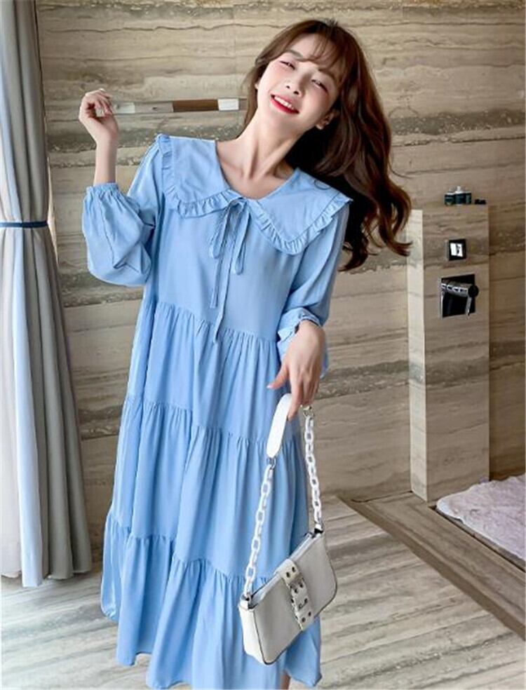 ロングセクション 小さい新鮮な カジュアル 怠惰な風 ゆったりする 人形の襟 ワンピース