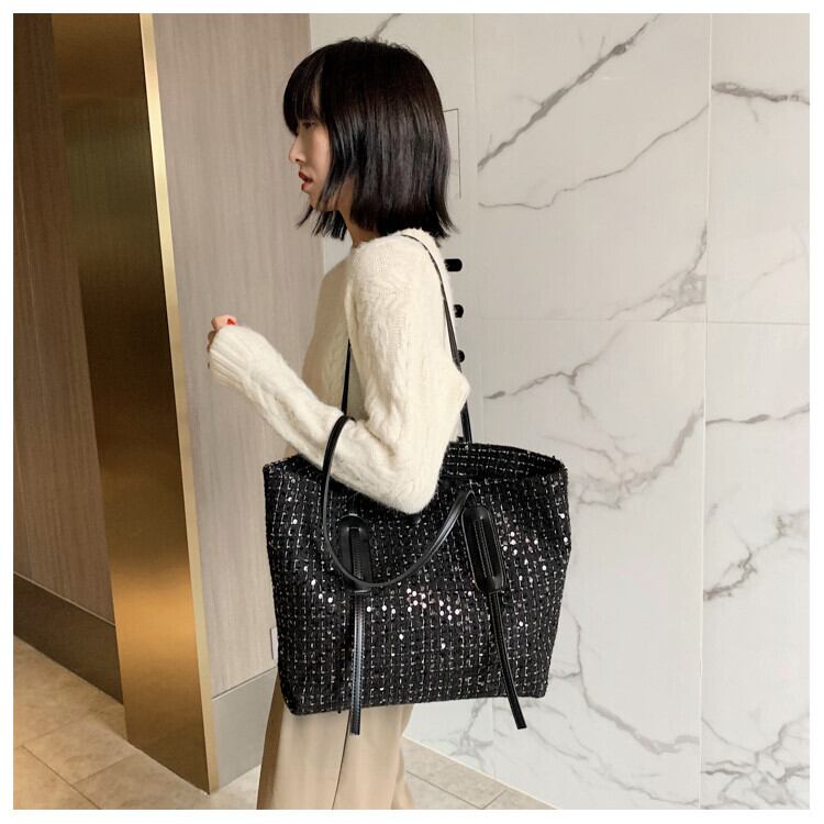 スパンコール ジッパー 大容量 ショルダーバッグ