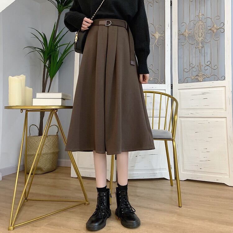 韓国ファッション ハイウエスト カレッジ風 厚手 ウール 中・長セクション