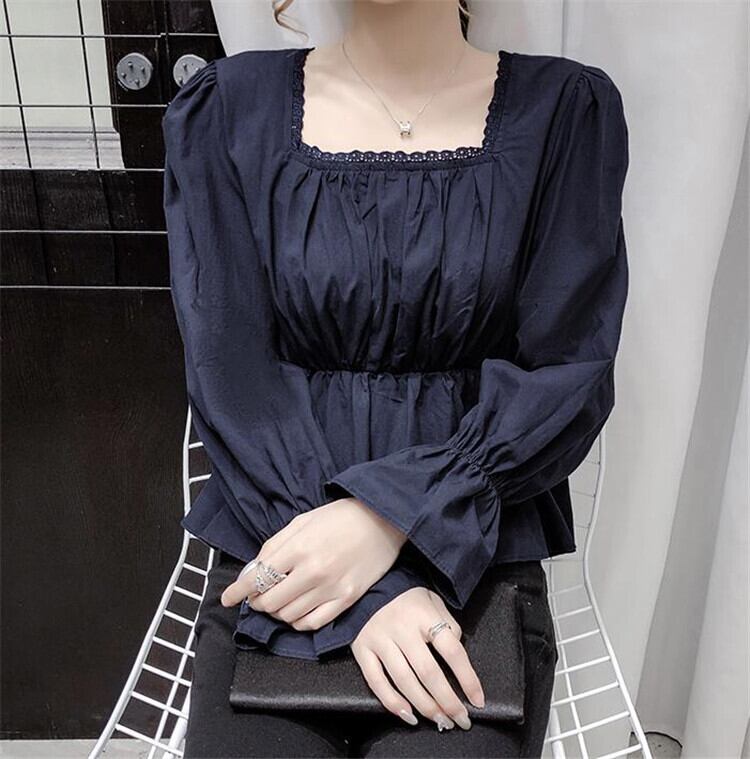 韓国ファッション シンプル スリム 長袖 韓国 シフォンブラウス シャツ