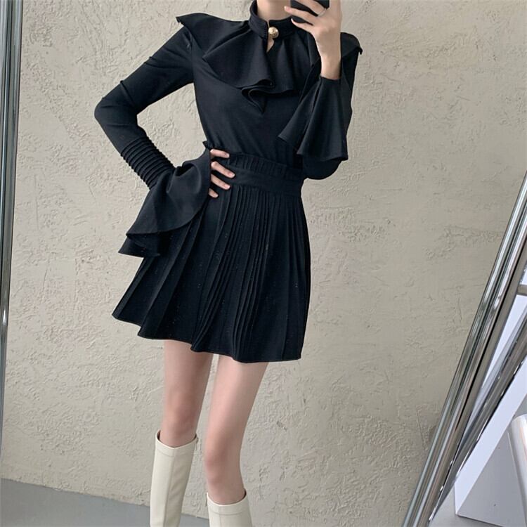 フリル 2点セット 長袖 ホーンスリーブ イレギュラー ハイウエスト