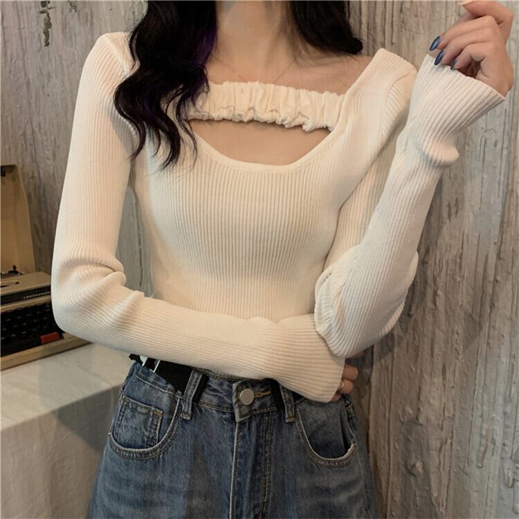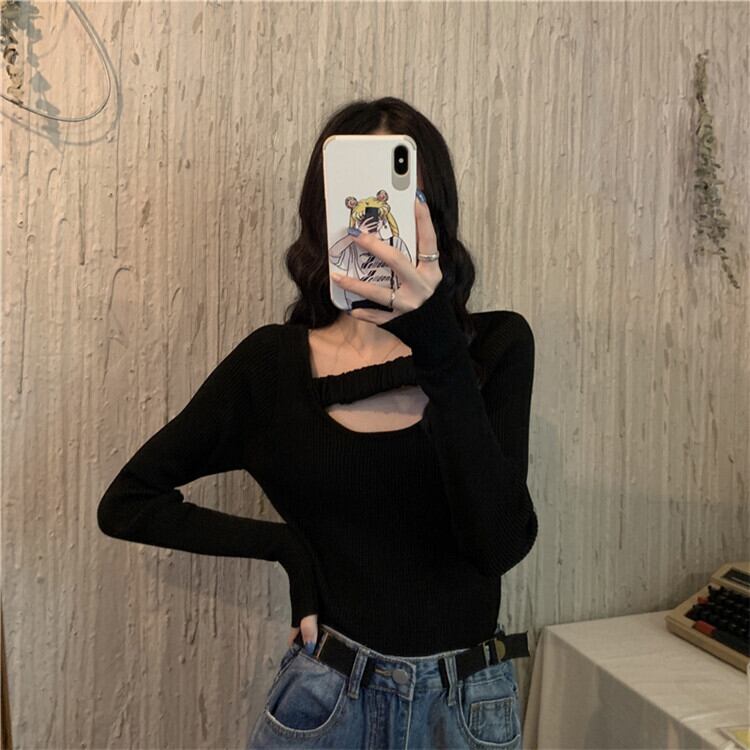 韓国ファッション スリム シン エレガント ニットトップス ヤングスタイル