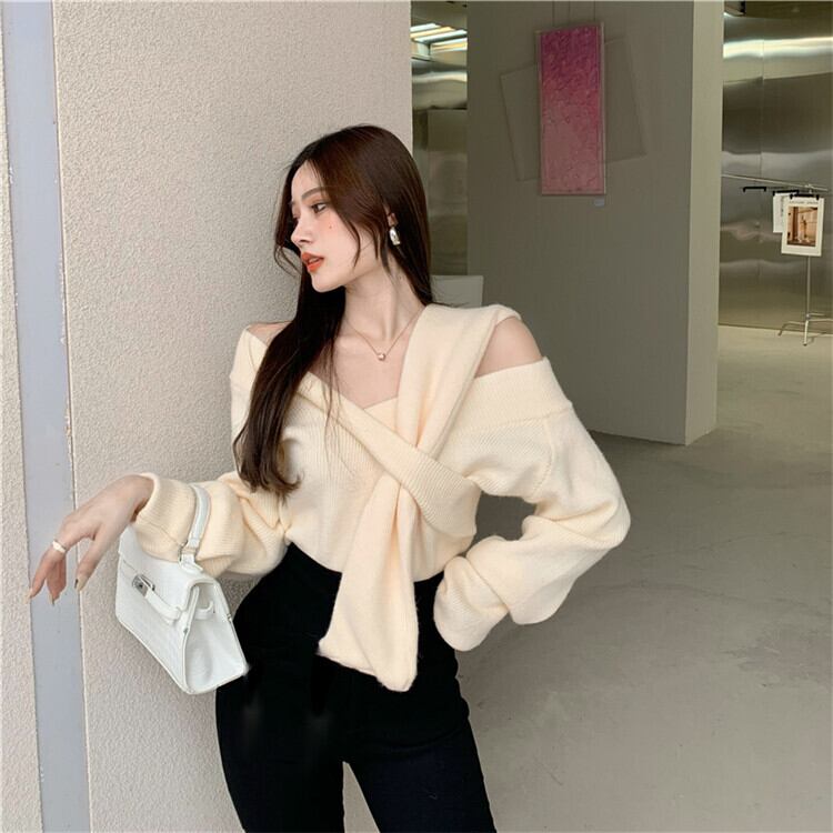 長袖 セクシー オフショルダー セーター ウエスタンスタイル トップス
