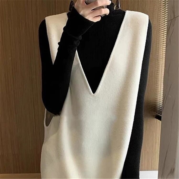 韓国ファッション シンプル エレガント Vネック カジュアル ワンピース