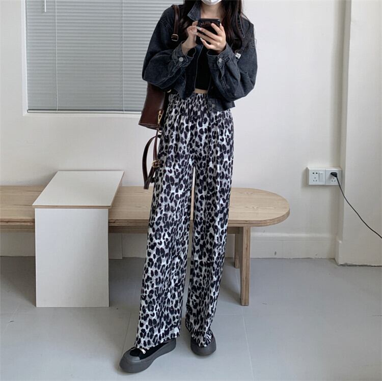 ハイウエスト カジュアル ゆったりする ヒョウ柄 ドレープ ワイドパンツ