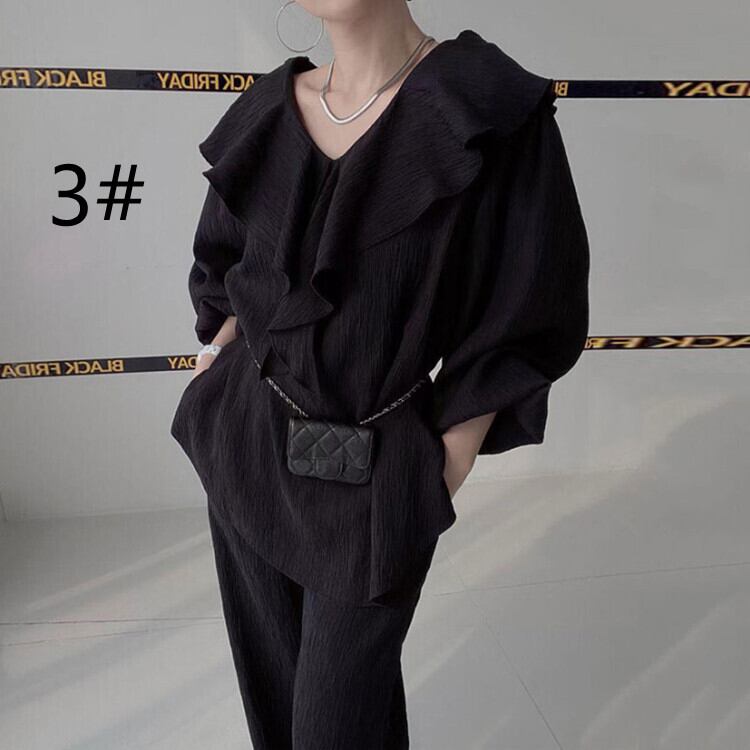 フレアブラウス ロングパンツ 2点セットアップ フリル 韓国風 レディース ウェストゴム