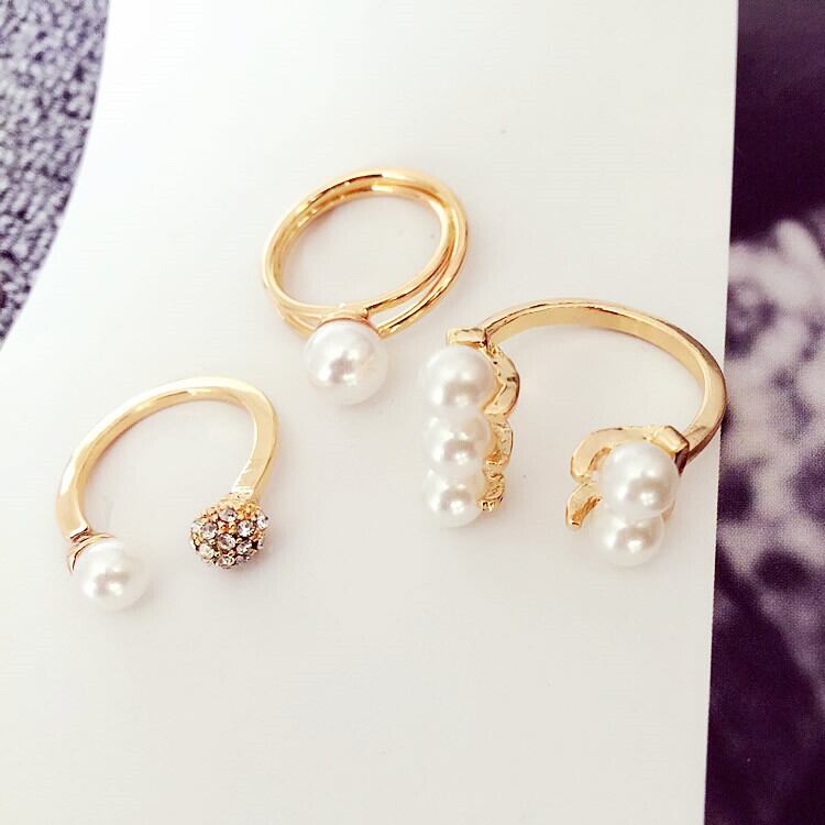 真珠 ナックルリング リング ヤングスタイル 韓国 ヨーロッパ 3点セット