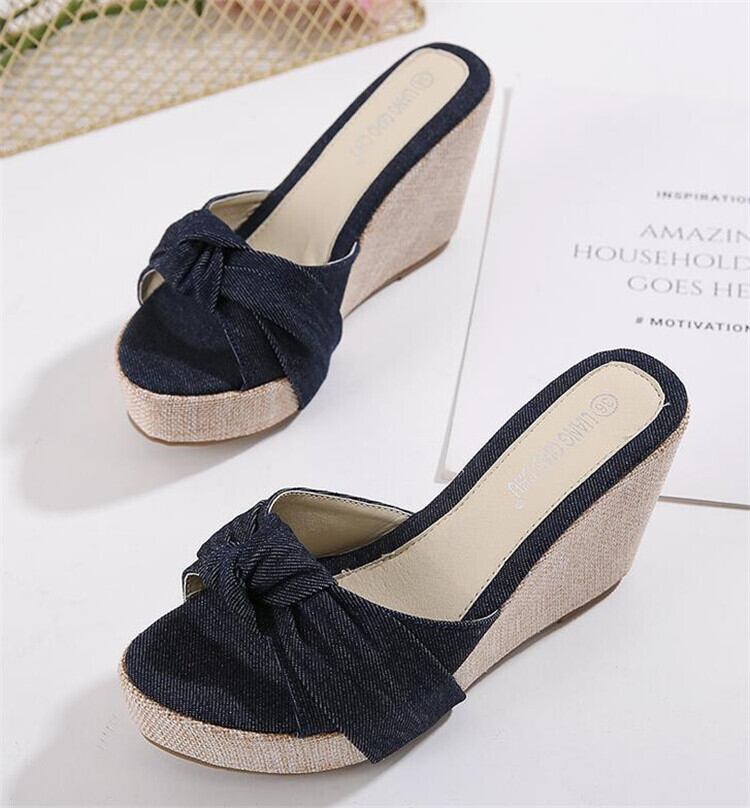蝶結び サンダル ウェッジソール 気質 エレガント 百掛け 小さい新鮮な デニム ピンヒール