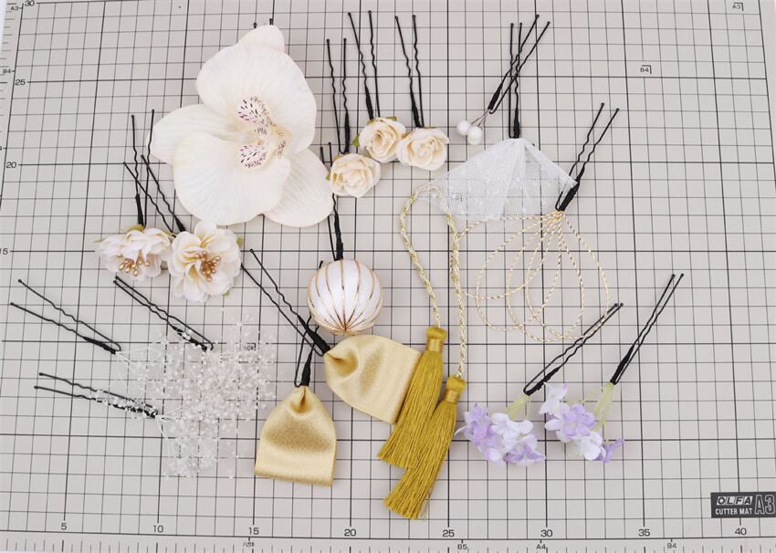 簪(かんざし)を挿して、こちらをサブ髪飾りとして添えるとより華やかになりますよ。