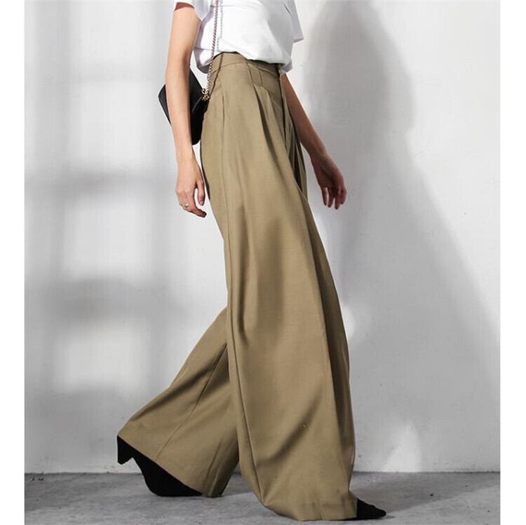 春夏 ハイウエスト レースアップ ワイドレッグパンツ 薄い スーツ ズボン